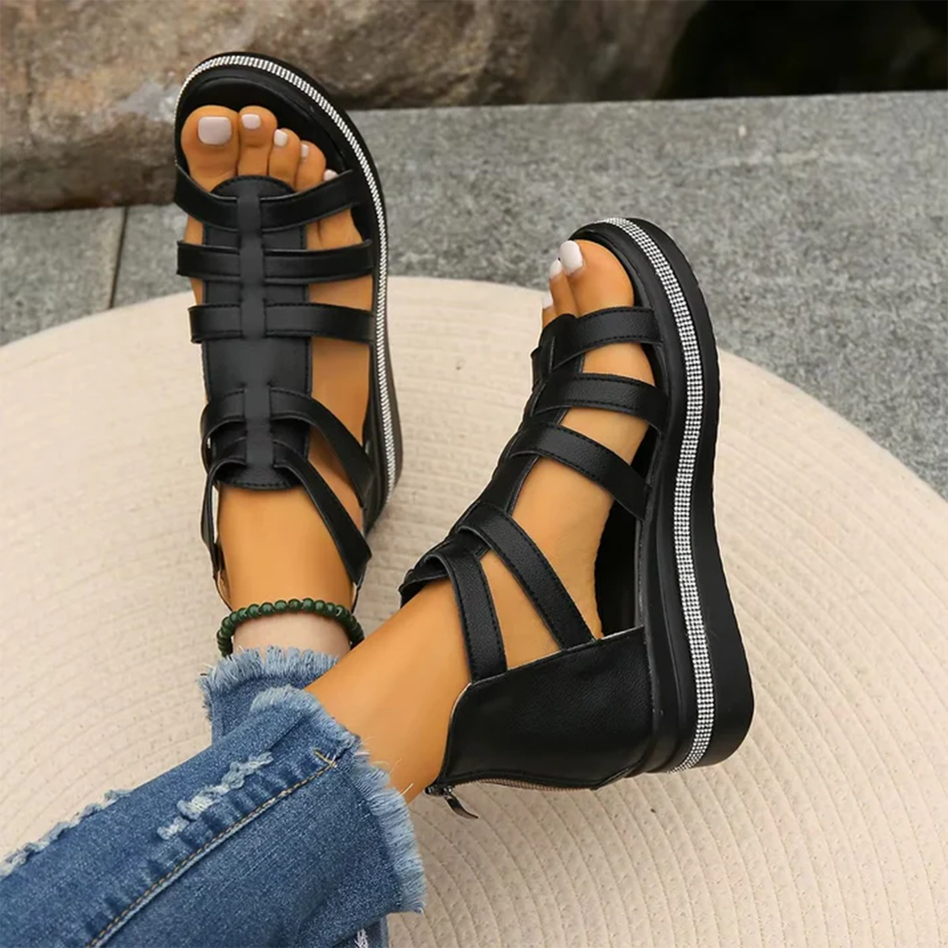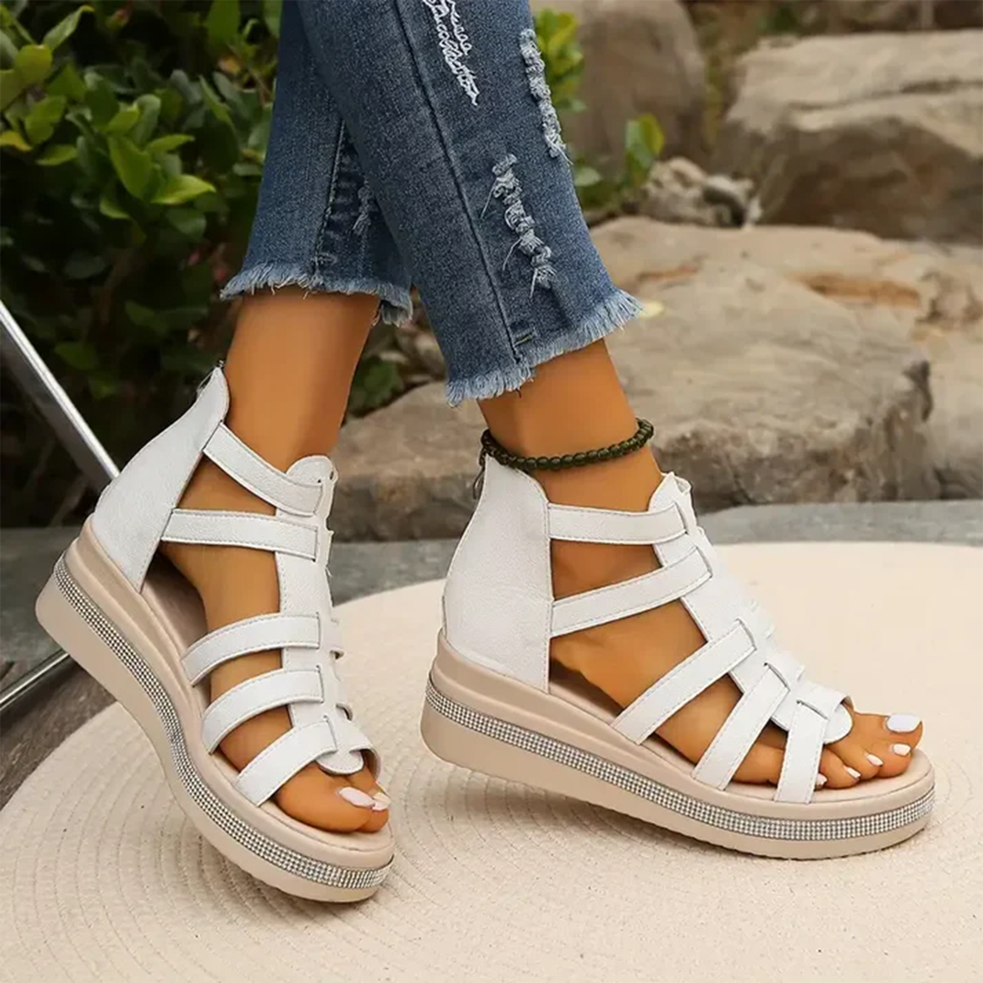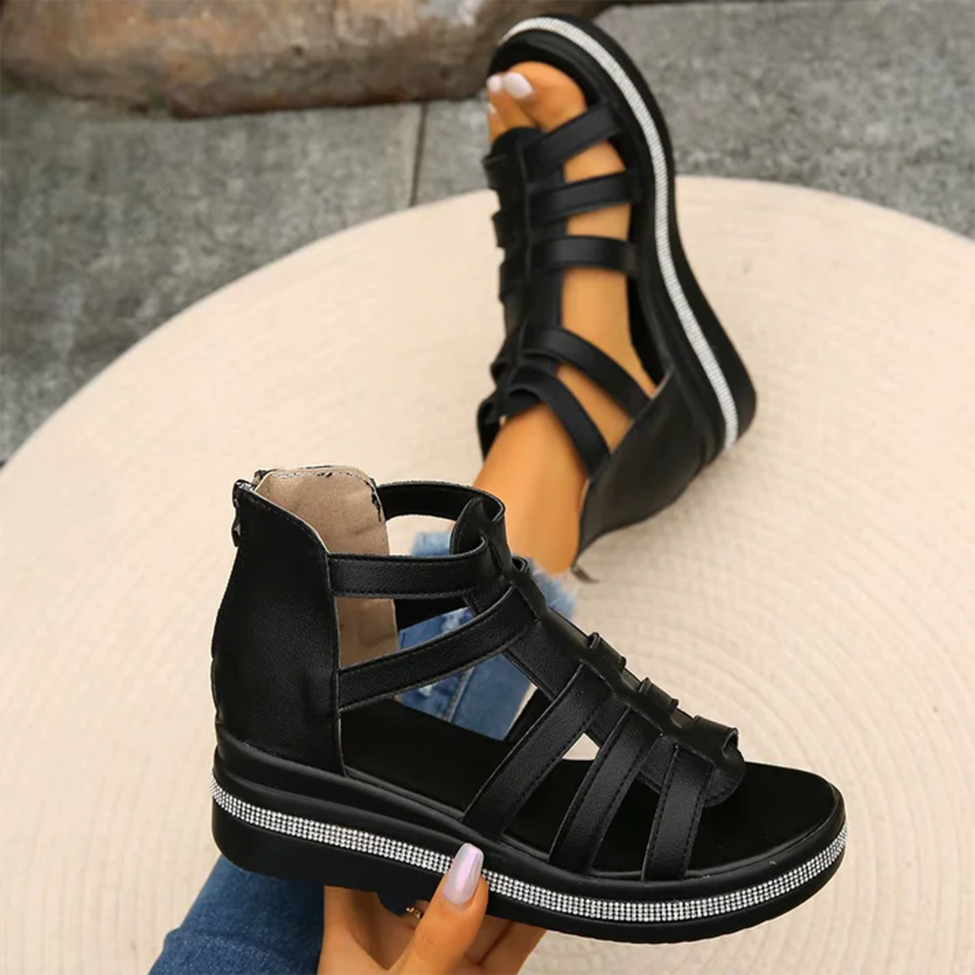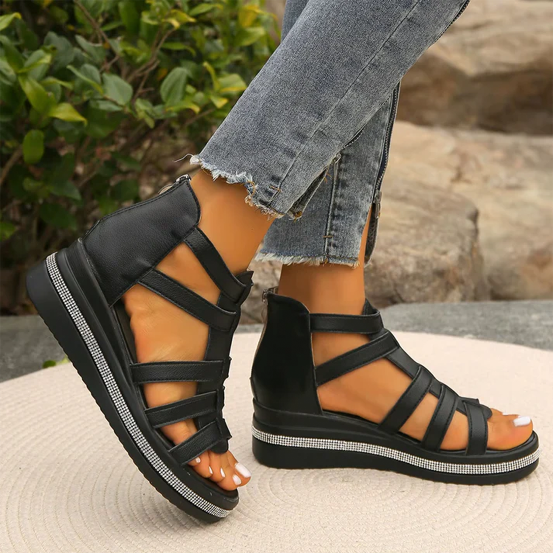 Il loro design a gabbia con finitura opaca e la comoda chiusura posteriore li rende facili da indossare, sicuri e perfetti da abbinare a qualsiasi outfit estivo.